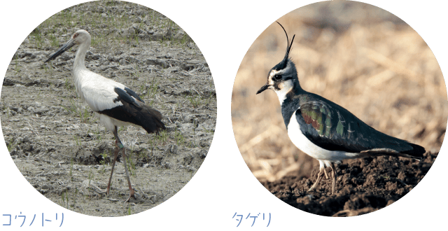 たくさん福が実るように、コウノトリの山田くんとタゲリの錦ちゃんにたくさん来てもらいました。