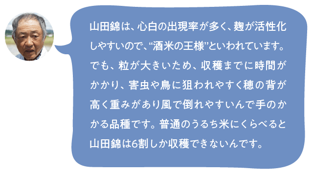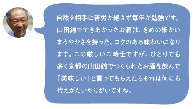 気軽に飲んでもらえることで、熱い志をもった酒米農家やテロワール(土地の個性)を守ることができるのではないか…次の世代へ繋げることも私達の役目だと考えます。京都産山田錦の純米酒を飲んで京都の酒文化を応援してくださる方を募集いたします!