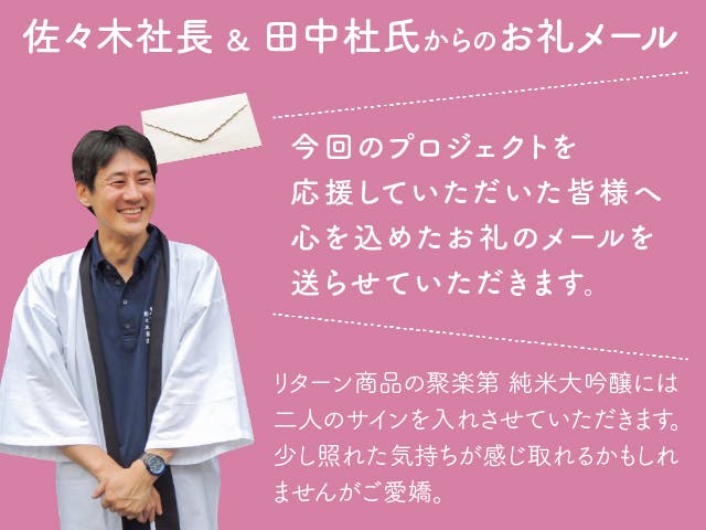 2022/03/24 18:34こんにちは!佐々木酒造です!最後の活動報告です。佐々木酒造でクラウドファンディングの話が上がってから約1年。募集が始まってから約8ヶ月。リターン発送が始まってから約1ヶ月。どうしたら早くお届けできるのか、間違えないように送るには…と不安な気持ちが勝っていた発送作業も無事終了し、一段落つきました!まだお手元に届いていない方が何名かいらっしゃるので完全終了ではないのですが、少し安心しました。普段から出荷でお世話になっているヤマト運輸さまもかなり協力してくださり、一日の出荷量をなるべく多くできるようにご配慮していただきました。ある日、電気工事で酒造が停電になったとき、暗闇の中みんなでスマホのライトをつけて作業をしたことも印象深い思い出となりました。皆様の元へ無事に福実鳥たちは届きましたでしょうか?もしお気づきの点がございましたらご連絡くださいませ。また、長期不在・転居などで住所不明の方には、メール・キャンプファイヤー内メッセージ・お電話をしておりますが、メールの迷惑メール対策機能に引っかかっている場合もございます。まだ届いていないけどヤマト運輸さまからも佐々木酒造からも連絡が来ていないという方は恐れ入りますが、ご連絡くださいませ。お酒に期限はないのですが、甘酒には消費期限があり、酒粕は熟成が進んでしまいますのでよろしくお願い致します。(ちなみに熟成粕も美味しく食べられます。)この度は弊社のプロジェクトにご賛同、ご支援いただき誠にありがとうございます。おかげさまでかなり想い入れが深い大切なプロジェクトとなりました。が、あまり浸る時間もないようで、すでに「次のクラウドファンディングは何する?」と社長と話をしています。いつやるのか、なにをやるのか、何にも決まってはいませんが、また佐々木酒造がなにか始めたときには、ちょっとだけでもいいので様子を見にきていただけると嬉しいです。今後ともどうぞよろしくお願い致します。京都 佐々木酒造 もっと見る
