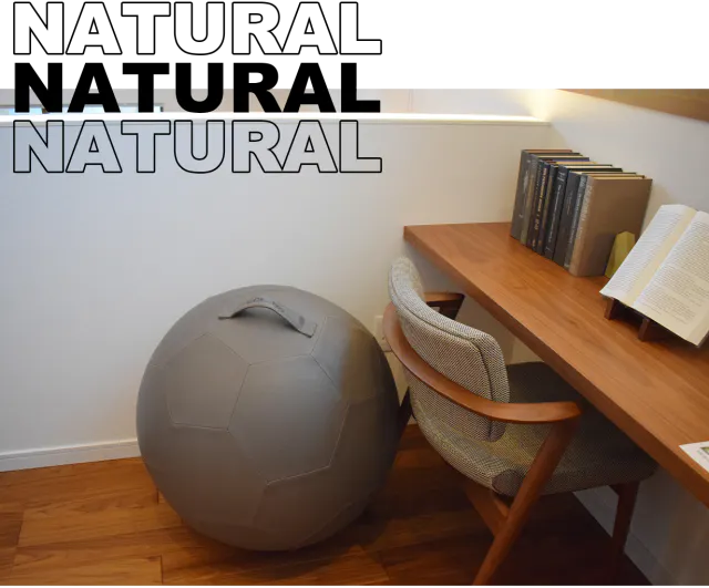 運動用のバランスボールに見えないのでインテリアとして、リビングや寝室、書斎など置く場所を選ばず快適なひとときを演出する逸品です。
