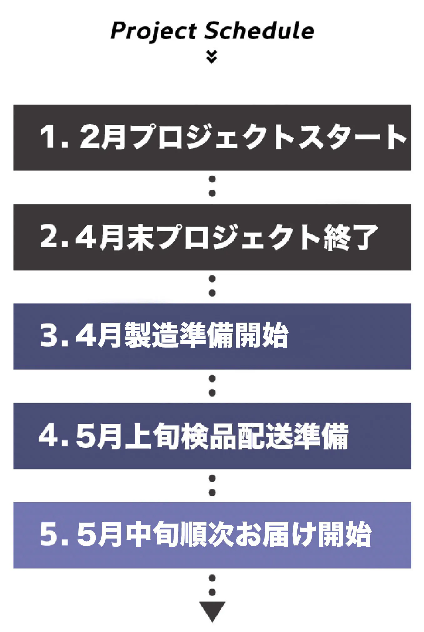 本プロジェクトを通して想定を上回る皆様からご支援を頂き、現在進めている環境から販売体制を更に整えることができた場合、 正規販売価格が今回の販売価格より下がる可能性もございます。