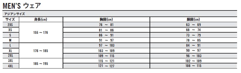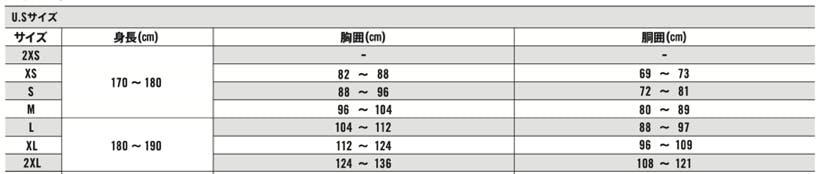 サイズはUSサイズ・アジアンサイズによって異なるので必ず確認してサイズを選択してください。