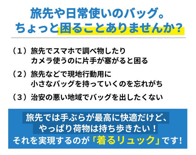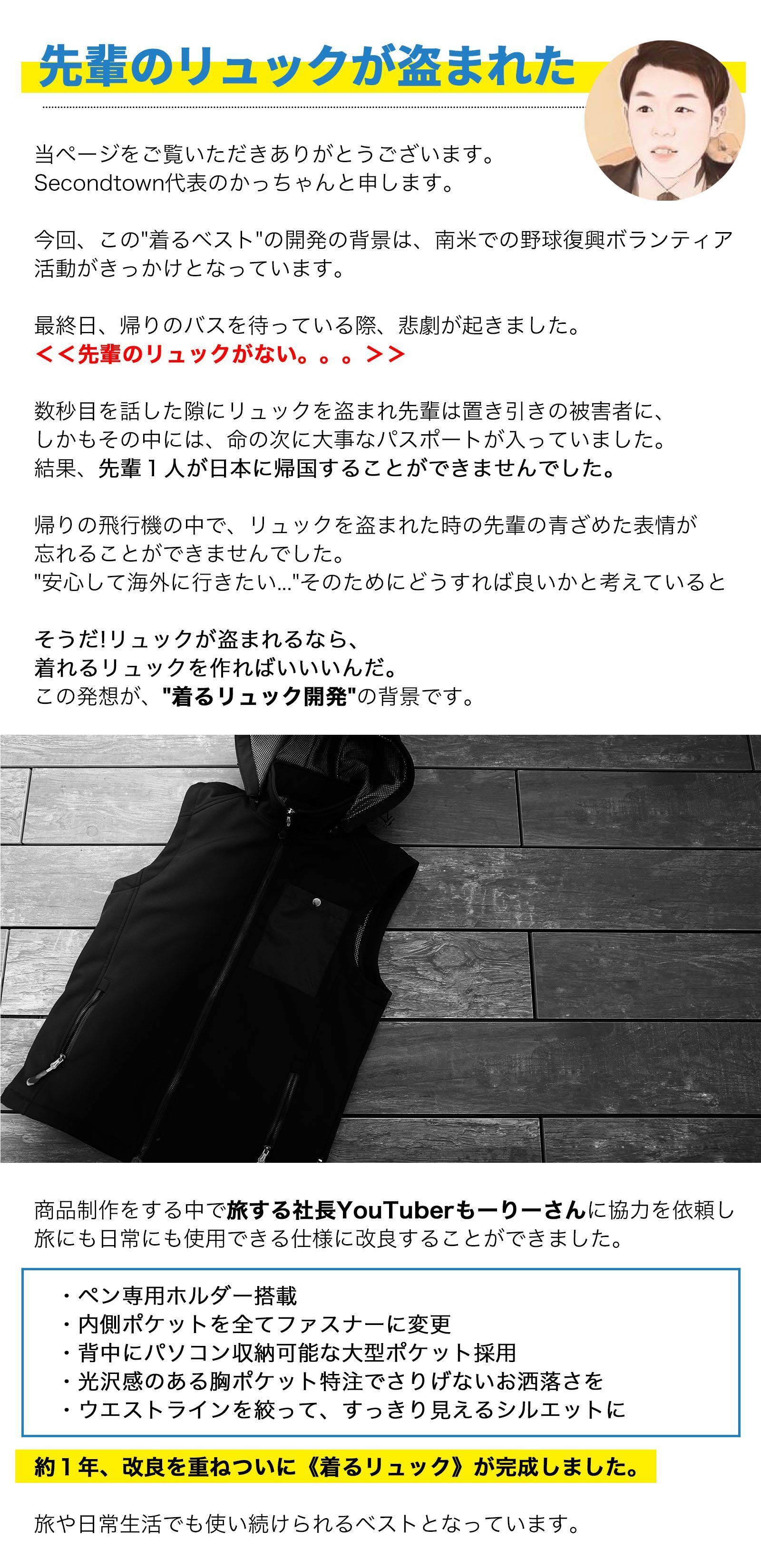 2021/12/14 22:38ありがとうございます。!大好評をいただいている着るリュック。"残すところあと1日になりました。開発者の先輩のリュックが盗まれた体験をきっかけに旅のプロのYouTuberもーりー様を監修に開発が始まったこの着るリュック。もっと多くの方にこの商品の良さと私たちの想いを伝えていきたい。ぜひ、皆様のお力で SNS等にアップしていただけると大変嬉しいです。また、別件ですが私たちの着るリュック。が最終日にキャンプファイヤー様のメインページに掲載されました。大変嬉しいです。泣お一人おひとりのご支援や応援、お気持ちが本当に嬉しくて、ご支援いただくたび湧き上がる喜びを噛みしめております。残り少ないプロジェクトですが是非、最後までよろしくお願いします。*購入者様へ、サイズを選択されていない方についてはメッセージより希望サイズをご教示願います。着るリュック。スタッフ一同。 もっと見る進捗状況について-先行手配分商品検品終了(12/11)