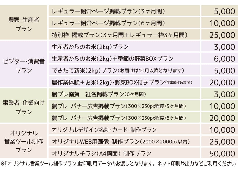 2022/04/27 18:53報告が滞り、大変申し訳ございません。コロナ渦のため実施できずにおりました体験系の返礼もようやくすべて終了することができました。また、プレ公開から頓挫しておりましたサイトにつきましても多々問題が発生し解消するために「農プレ」という名称に変更し、【Database】ページを設け、まずはそちらでの運営となることに。。新農プレは、弊社のブランディング営業のようなHP(苦笑)になってますが、Databaseの内容を充実させ、いずれは独立したページで運営できるよう今後も試行錯誤して参ります。(現在、無償で掲載いただいた方のみ掲載させていただいております)今後ともどうぞよろしくお願い致します。 もっと見る