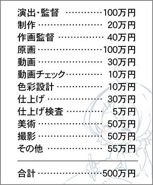 TVシリーズの場合、動画の枚数単価は1枚200円程度。