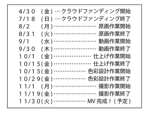 集まった支援金は、ミュージックビデオの製作費として使用します。
