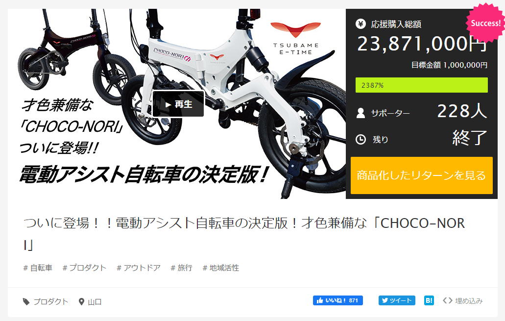 23,871,000円を調達いたしました。