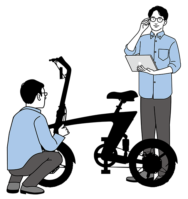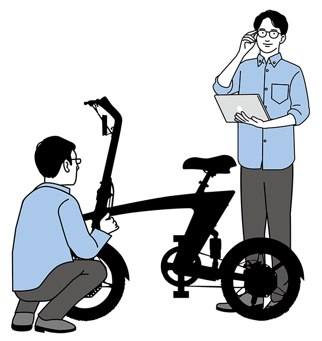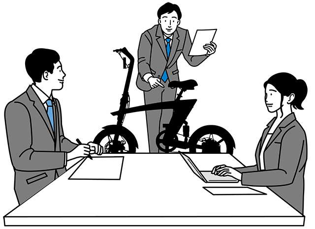 近年人気の高い「小径車(ミニベロ)」としてプランニング。フレームには「ツバメ・イータイム」社名の「ツバメの『つ』」をイメージしたフレームを採用。他には類を見ないスタイリッシュかつ、みんなに自慢できるフレームデザインとなりました。特に今回は「ツバメ・イータイムのフラッグシップモデルを目指す!!」とプロジェクトチーム一丸となって気合が入っております。