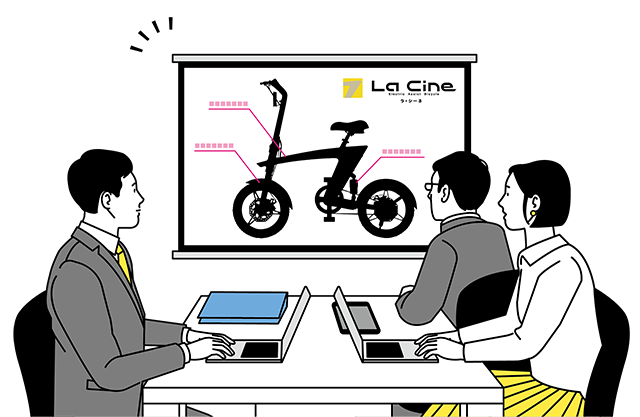 ちょっとダサくても実用性を重視する方もいらっしゃいますが「どうせ乗るならカッコよく乗りたい!」「毎日の移動を楽しく快適にしたい!」そんな皆さんの想いをおしゃれなフレームデザインを始め、前後輪にはディスクブレーキを搭載、バッテリーの出し入れまで、持てる技術を細部にまで活かし、電動アシスト自転車「LaCine(ラシーネ)」は誕生いたします。