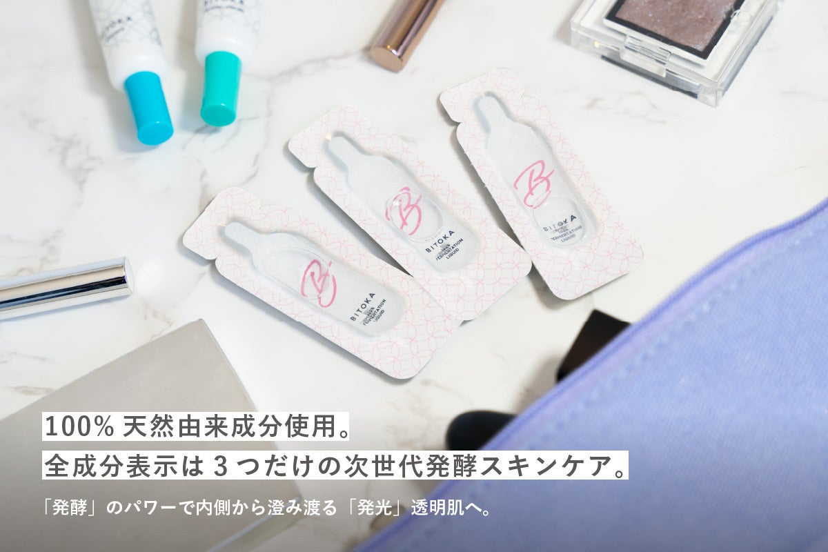 美肌成分たっぷりのツバキ花発酵物が詰まった発酵原液を、毎日フレッシュな状態でご使用いただくため、1回分ずつ個包装。2ndゴール達成で個包装でのお届けとなります。
