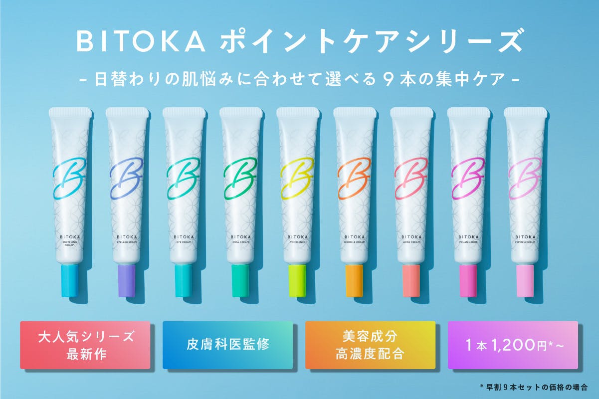 新プロジェクト始動!皮膚科医監修の9種部分ケアアイテム by BITOKA
