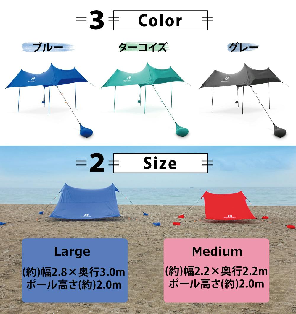 海水浴場やキャンプなどのアウトドアではもちろん、野外フェスなどの各種レジャー、おうち時間の充実に、お庭でおうちキャンプ、バーベキュー、公園やグランドでピクニック、ビニールプールや植物の日除け、プライバシー保護や熱中症対策にも活躍します!