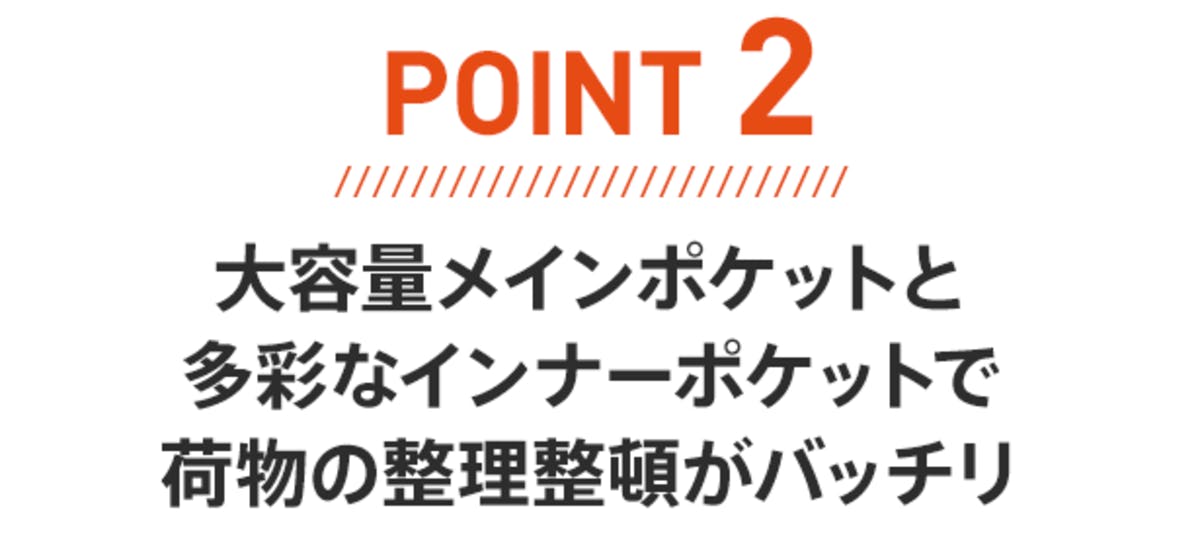 多彩なポケットで荷物の整理整頓もバッチリ。行動派のあなたをしっかりサポートします。