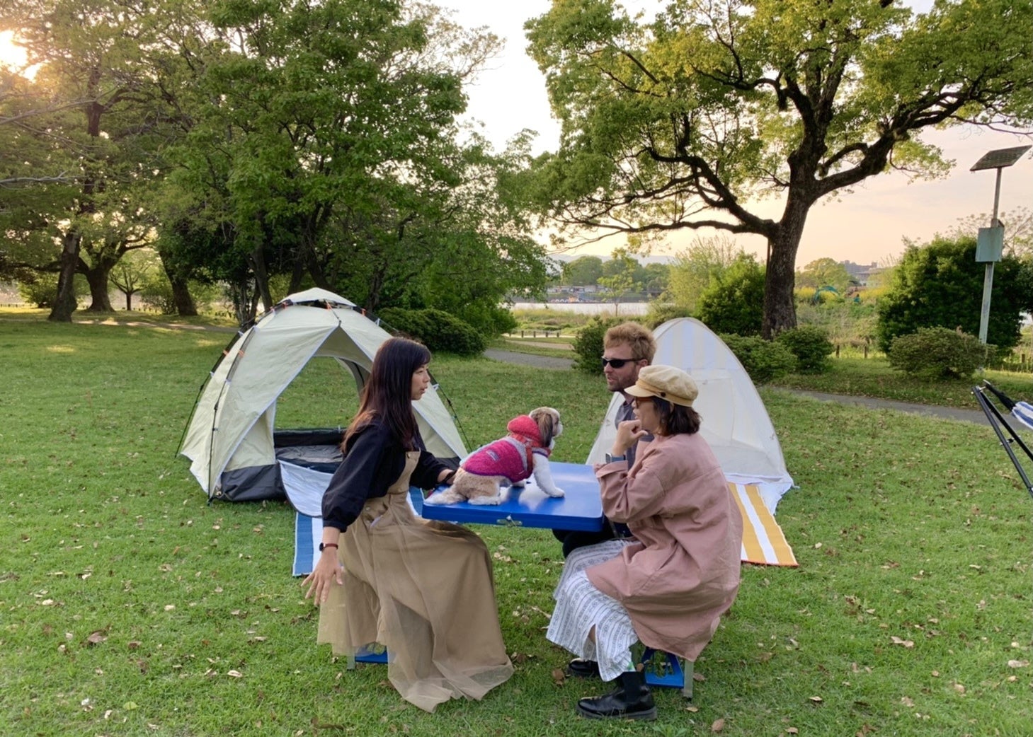 お手持ちのテントやレジャーシートをお持ちいただいてもOKです。また、いくつかキャンプ用のテントを設置したりレジャーシートをこちらで用意しているので、