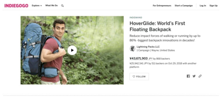 今回の商品は、HoverGlide社の主力商品であるフローティングバックパックであり、弊社は日本における総代理店としてこの商品をクラウドファンディングで皆様にご紹介することで、お客様の評価・ご意見をいただき、さらなる商品開発および発掘のヒントまたは商品流通のリサーチとさせていただきたいと考えています。