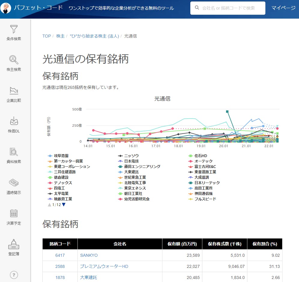 バフェット・コードではすでに投資家の保有状況の情報を提供しています。