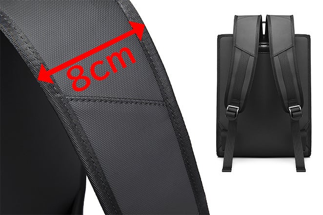 通常のリュックより大きい幅と厚めのクッション素材を合わせて肩にかける圧力がより小さくなります。