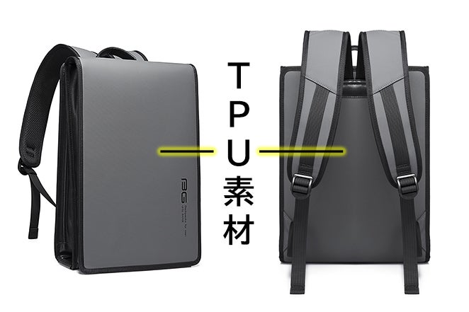 リュックの表面には手触りがいいTPU素材、両側には革から構成されているため、ビジネスに相応しい上品さと高級感に溢れています。