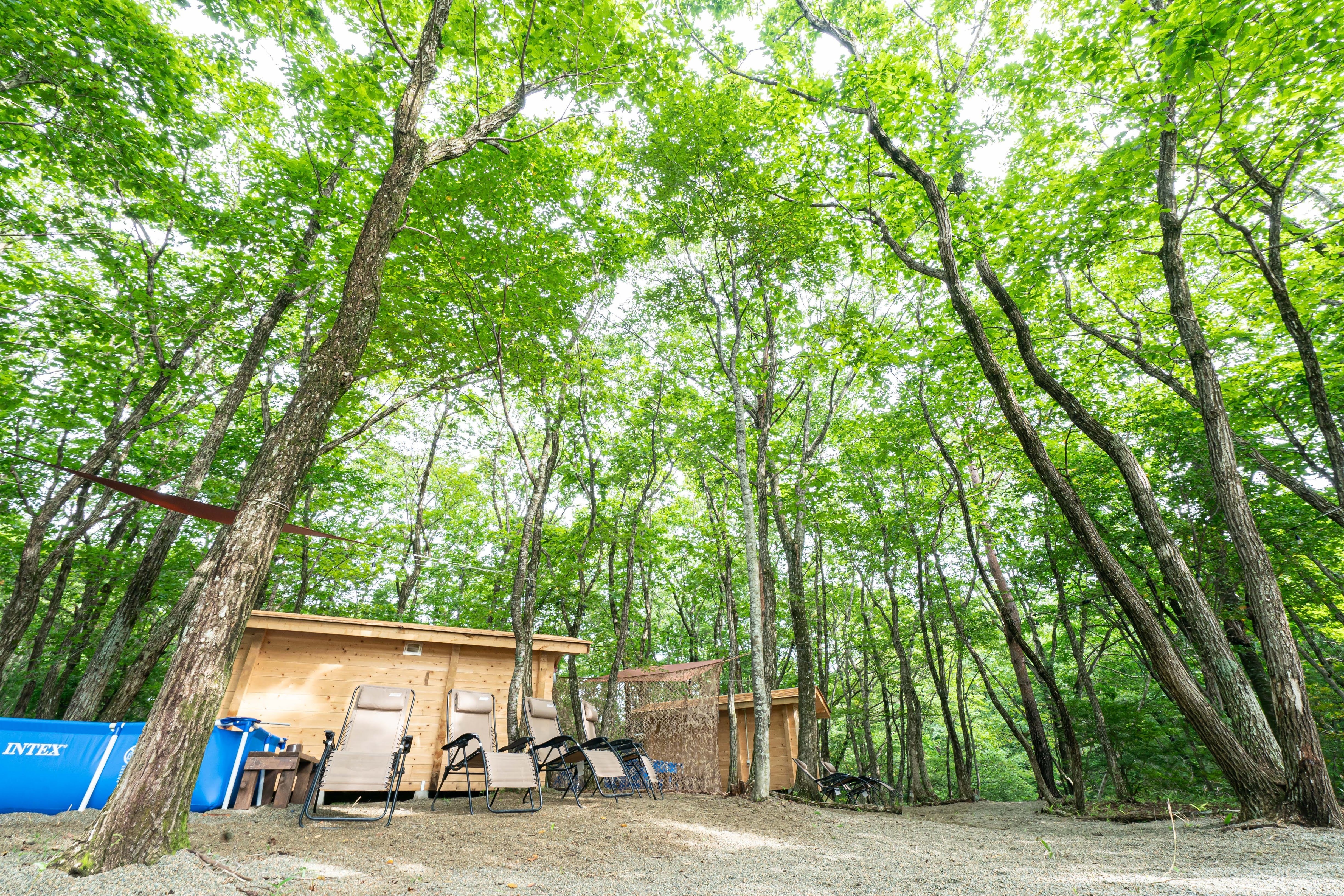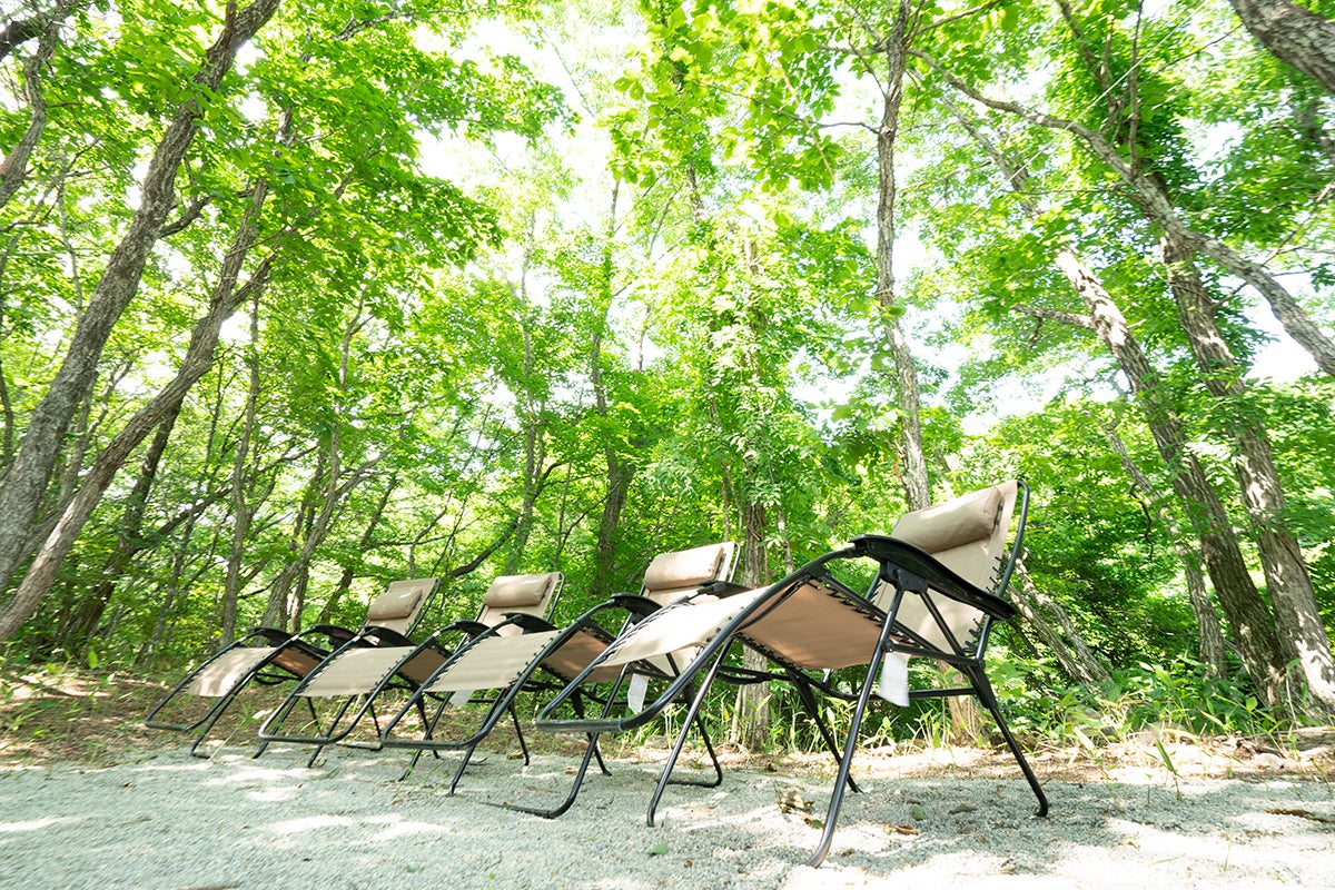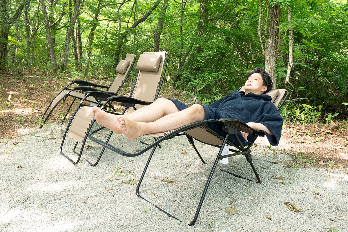 また外気浴は横になった状態で行うのがベスト?らしいので、インフィニティチェアもご用意。大自然の中で、水風呂から最短で、思う存分ととのってください。