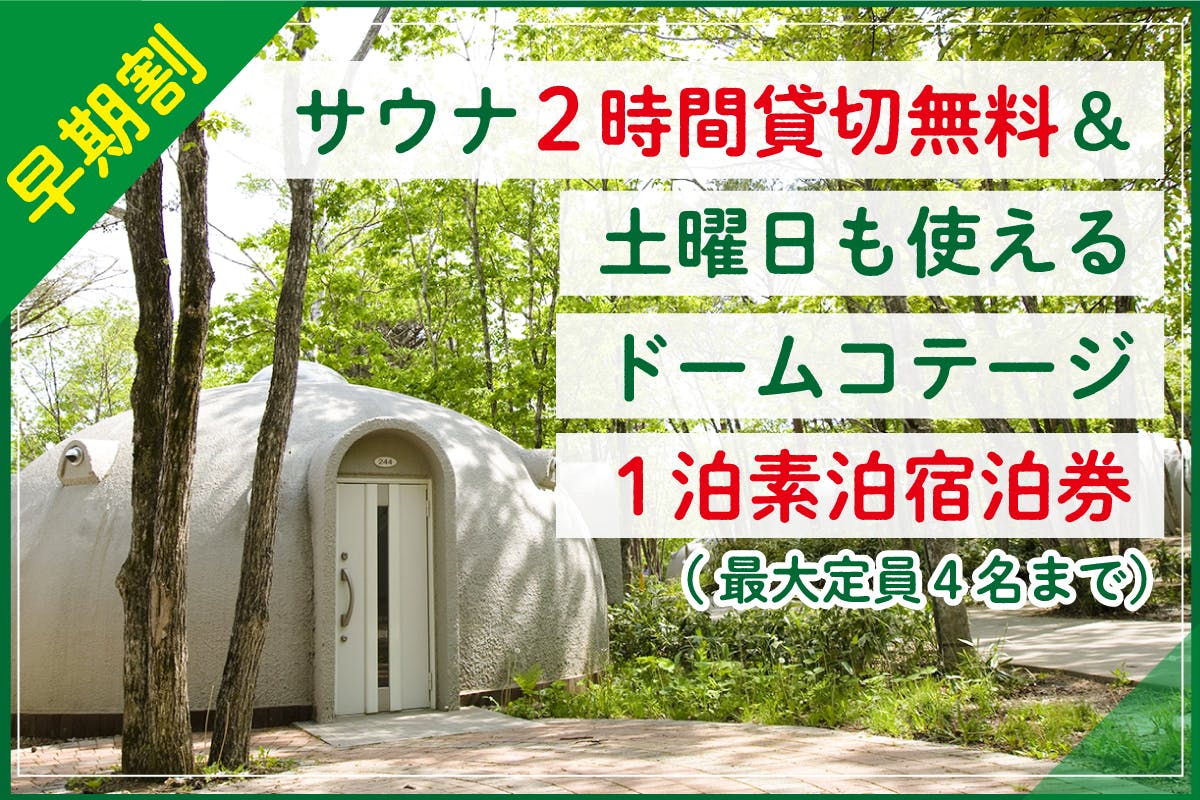 サウナ2時間貸切利用券&土曜日も使えるドームコテージ1泊素泊まり宿泊券(最大定員4名まで)