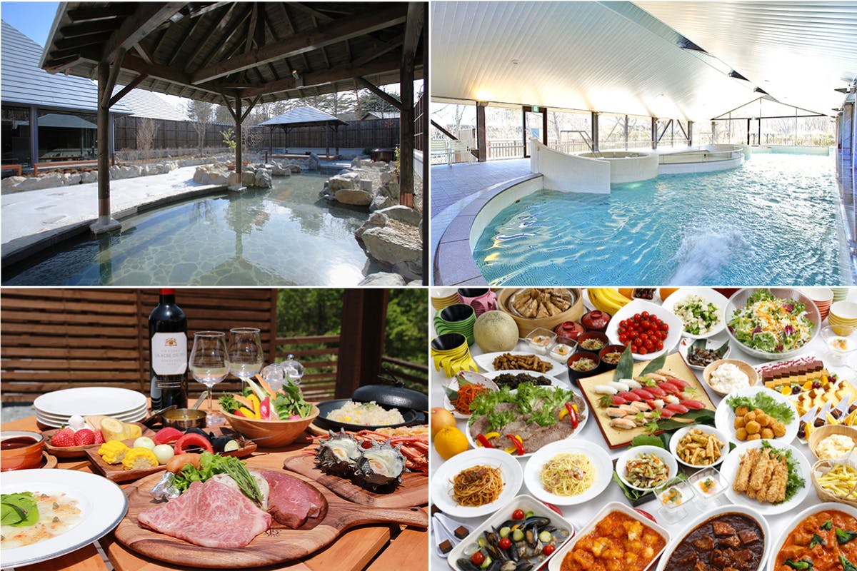 PH9.8を誇る温泉大浴場&スパ、BBQ、目の前で焼くステーキや福島県内の郷土料理のバイキング