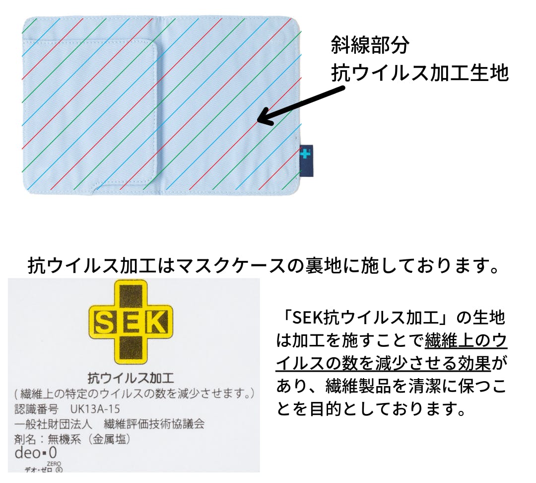 長くコロナの生活が続き、マスクを使う時間が日々の中で多くなってきています。もちろん花粉の時期などもそうですが、今、少しでも微力ながら力になれる商品が作れたらという事で抗ウイルスの生地を作ってマスクケースを作ってみました。世代関係なく使っていただけたらと思っています。今回は企画、生産したメーカーになります。