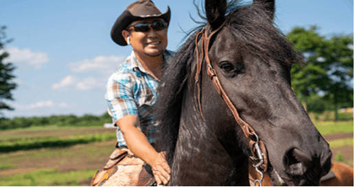 父親の牧場を経て2才より乗馬をはじめ、半世紀以上乗馬、馬術、管理、調教、を行ってきました。