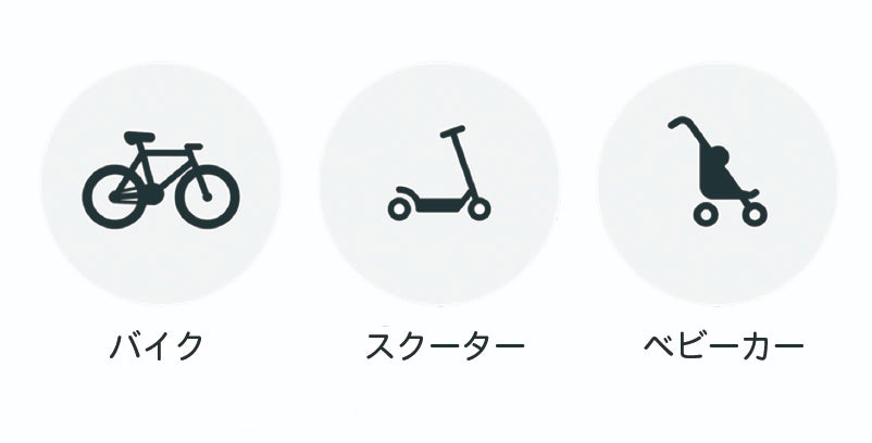 自転車はもちろんのこと、22.2mmから31.8mmのバーのサイズでしたらスクーター、ベビーカーなどにも取り付け可能。
