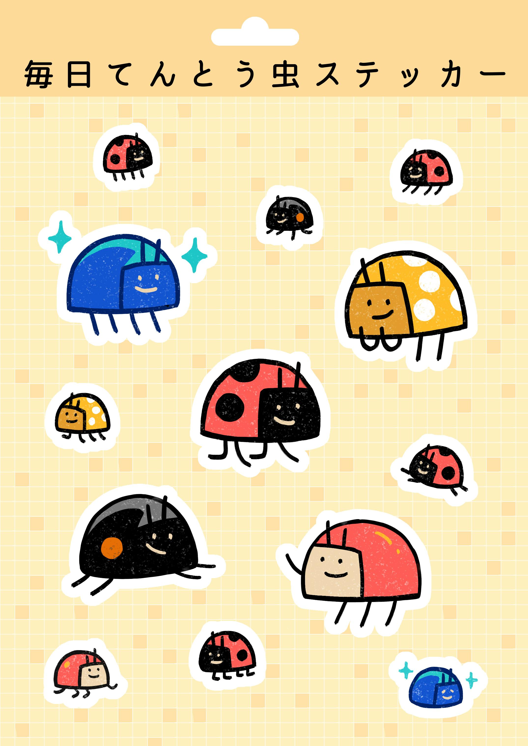 てんとう虫と、一緒に描かれる物とのサイズ比がなんとも可愛く、Twitterで投稿される新作イラストには多くの反響を頂いています。たまに連作として展開することも。