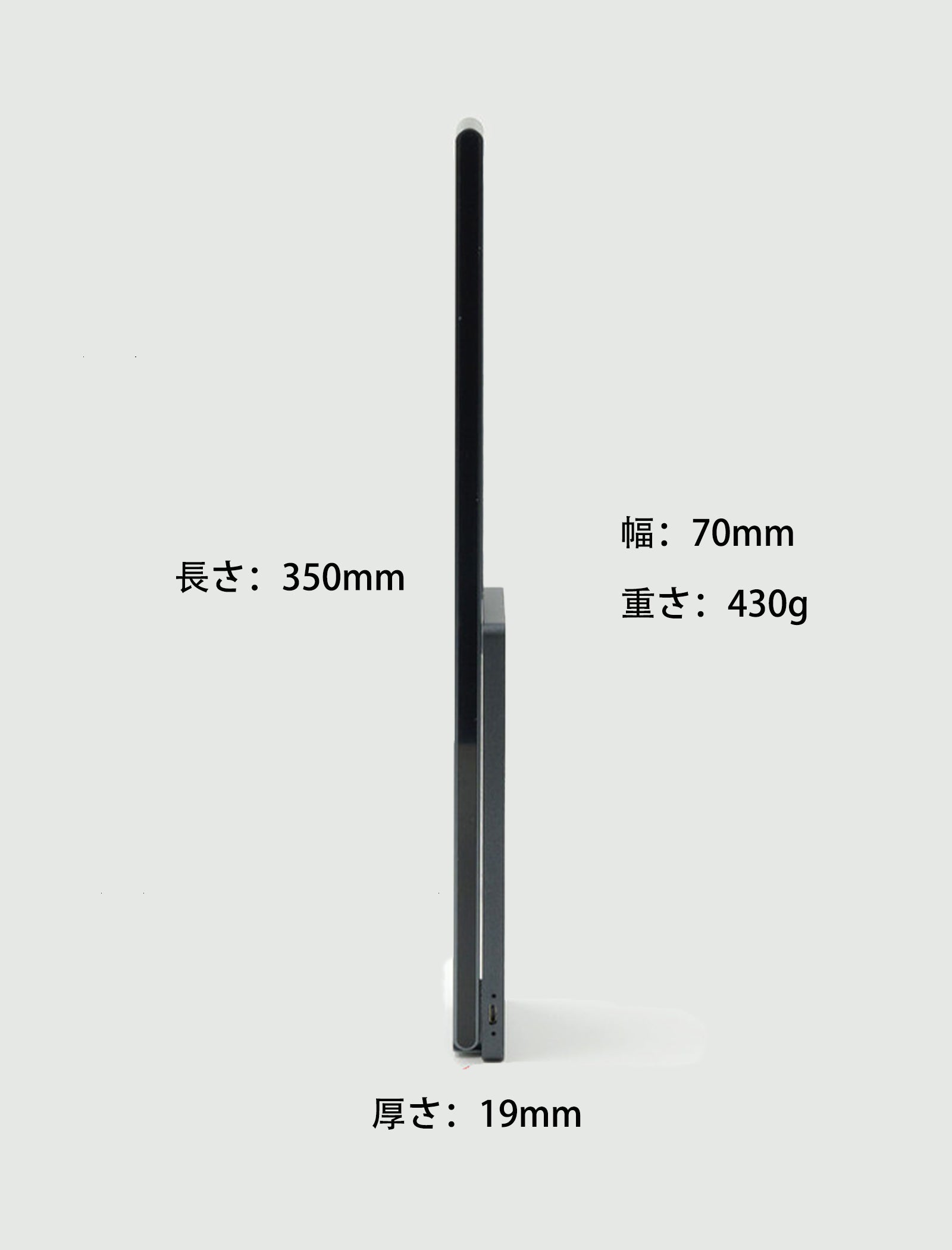 500mlペットボトルより軽い軽量設計。厚さはわずか19mmであり、とても薄くてコンパクトです。