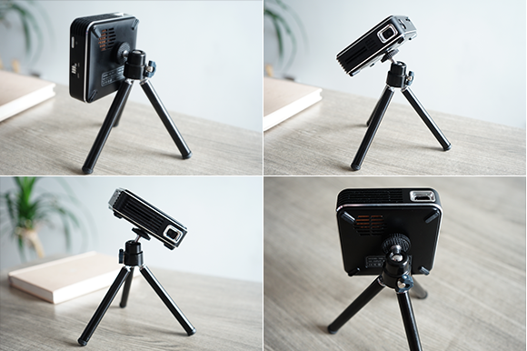 付属三脚が90°回転度し、天井や壁に自由に投影可能。