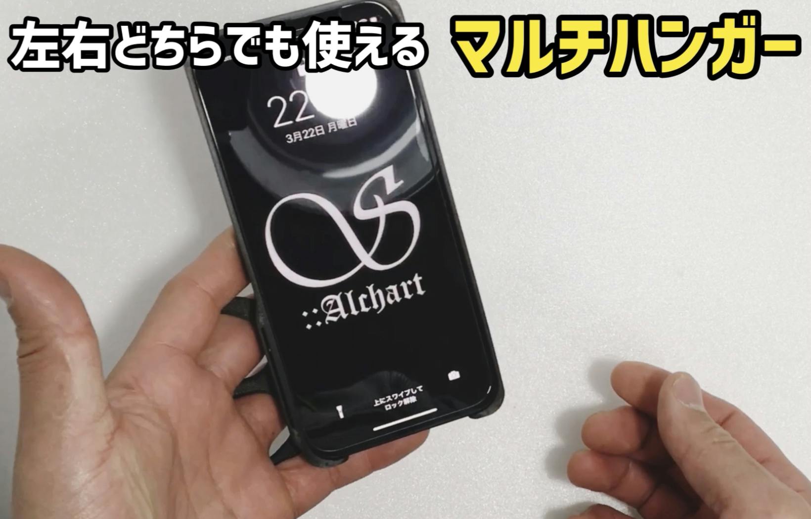 ・マルチハンガーは左右どちらの片手操作に対応。大切なデバイスの落下を防止します。