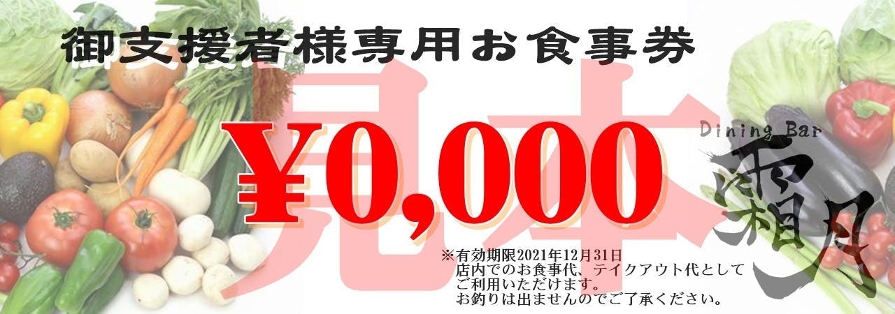 ご支援頂いた方には、金額に応じて、当店でお食事代としてご利用できるお食事券をお送り致します。