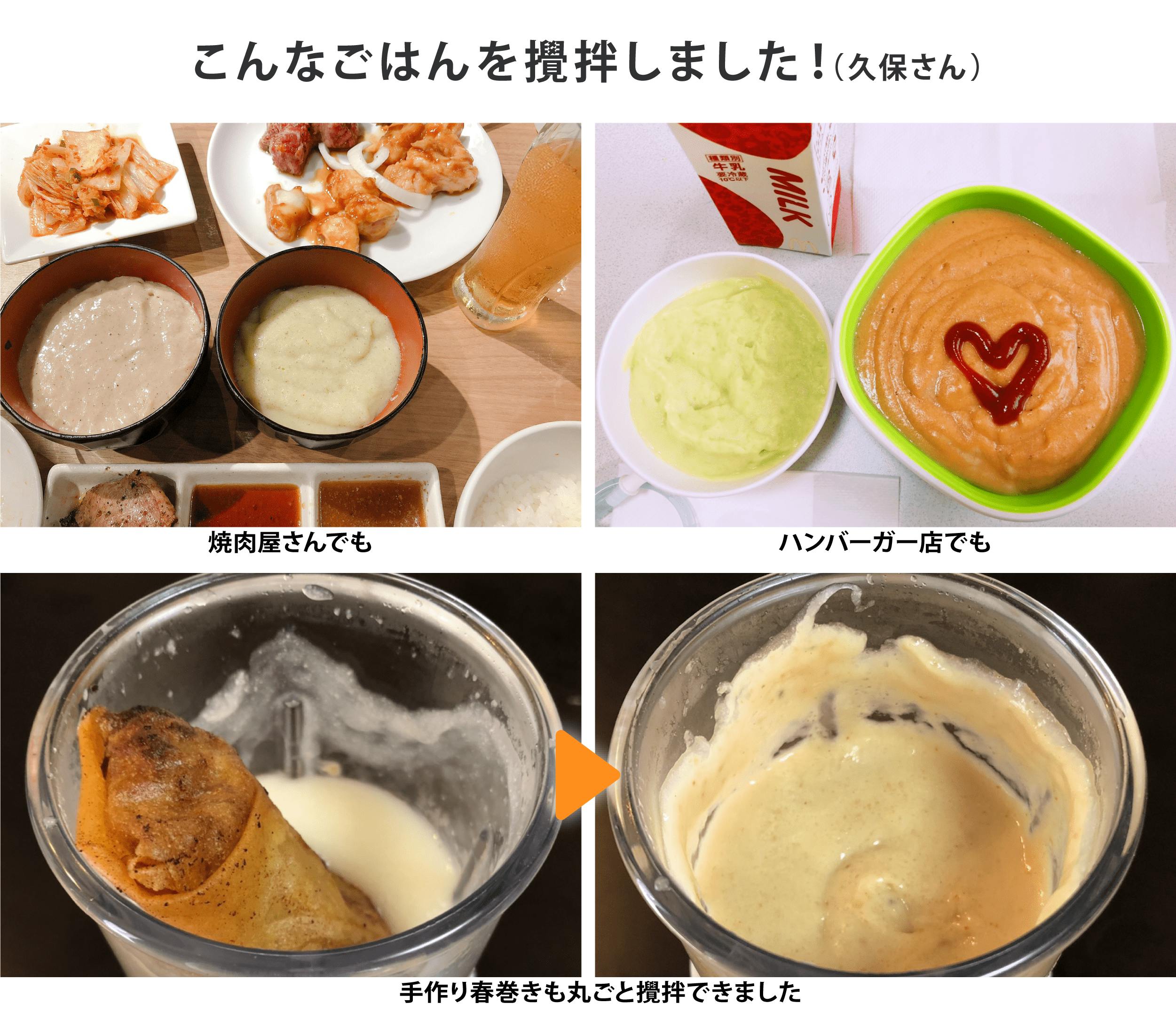 その他にも昨今、地球温暖化が原因とされる台風被害、河川氾濫または地震などの天災が懸念される中、避難所または医療福祉施設の現場でも停電時にポータブル発電機などでも充電でき、その場で食事の形態変更ができるようなブレンダーの開発オファーもありました。