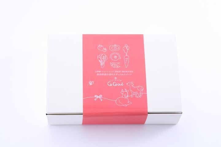 ②甜菜糖やデーツで甘さを表現し、小麦粉・卵・米粉など出来る限りの材料は奈良県産を使用。
