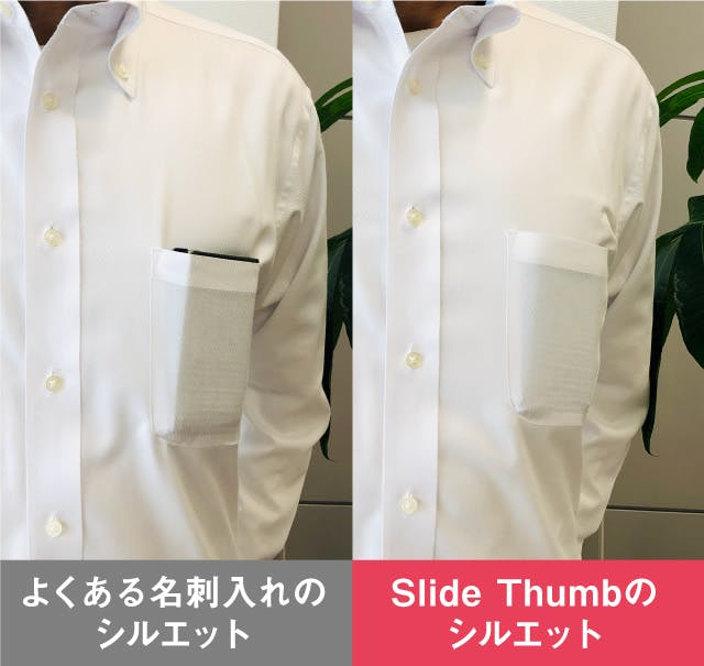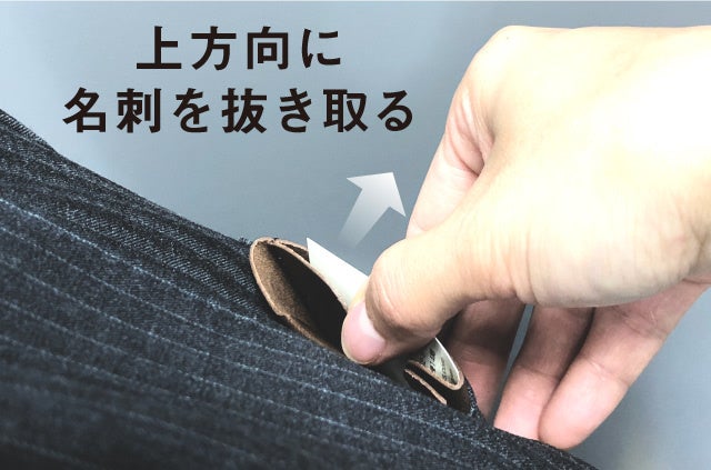 さらに、胸ポケットに入れた状態から、名刺だけを取り出すことも。