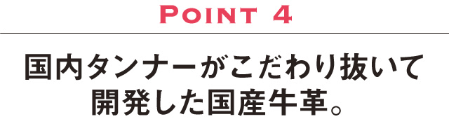 革の生産と販売を経験した立場から、海外に劣らない日本の技術の高さを感じ、私たちは敢えて「日本産」レザーであることにこだわりを持っています。長く使用して「革らしさ」を味わっていただくために、植物タンニンを主とした鞣しや、天然の表情を消さない染料染め、感触を重視したオイルやワックス仕上げなどを施しています。
