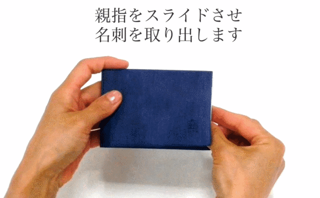 閉じたスライドサムの間に親指を挿し入れて、切り込みに沿って指をスライドさせれば、サッと名刺を取り出せます。