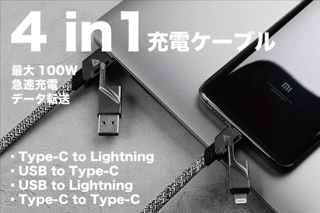 最大4.5A、100W 充電| 480Mbpsデータ転送スピードの4in1の超多用途の充電&データ転送ケーブルです。