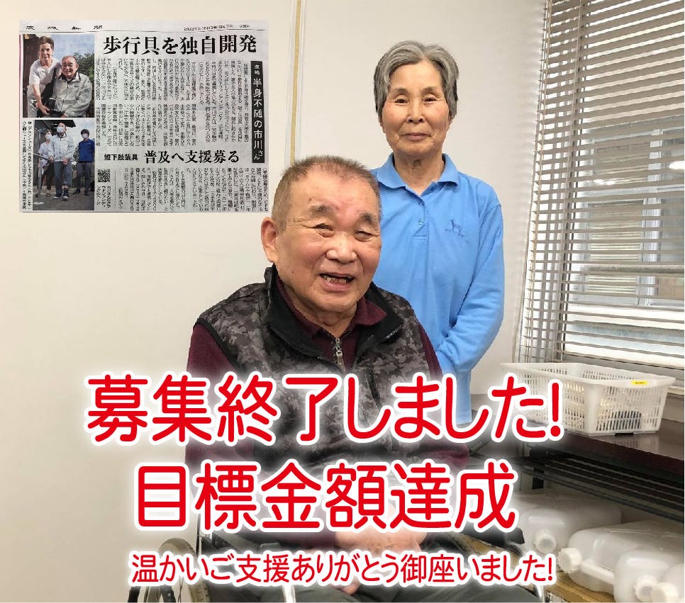 是非とも皆さまにご支援、ご利用願いたく思います。 今後は、使用上の私たちでは見つけられなかった不具合や改良点をつまびらかにすること。そして、ご支援いただきました資金を用いて、更に使い勝手の良い、歩行に悩む方々のお力になれるように改良を重ねより良い商品開発、皆さまにお届けしたいと思います。