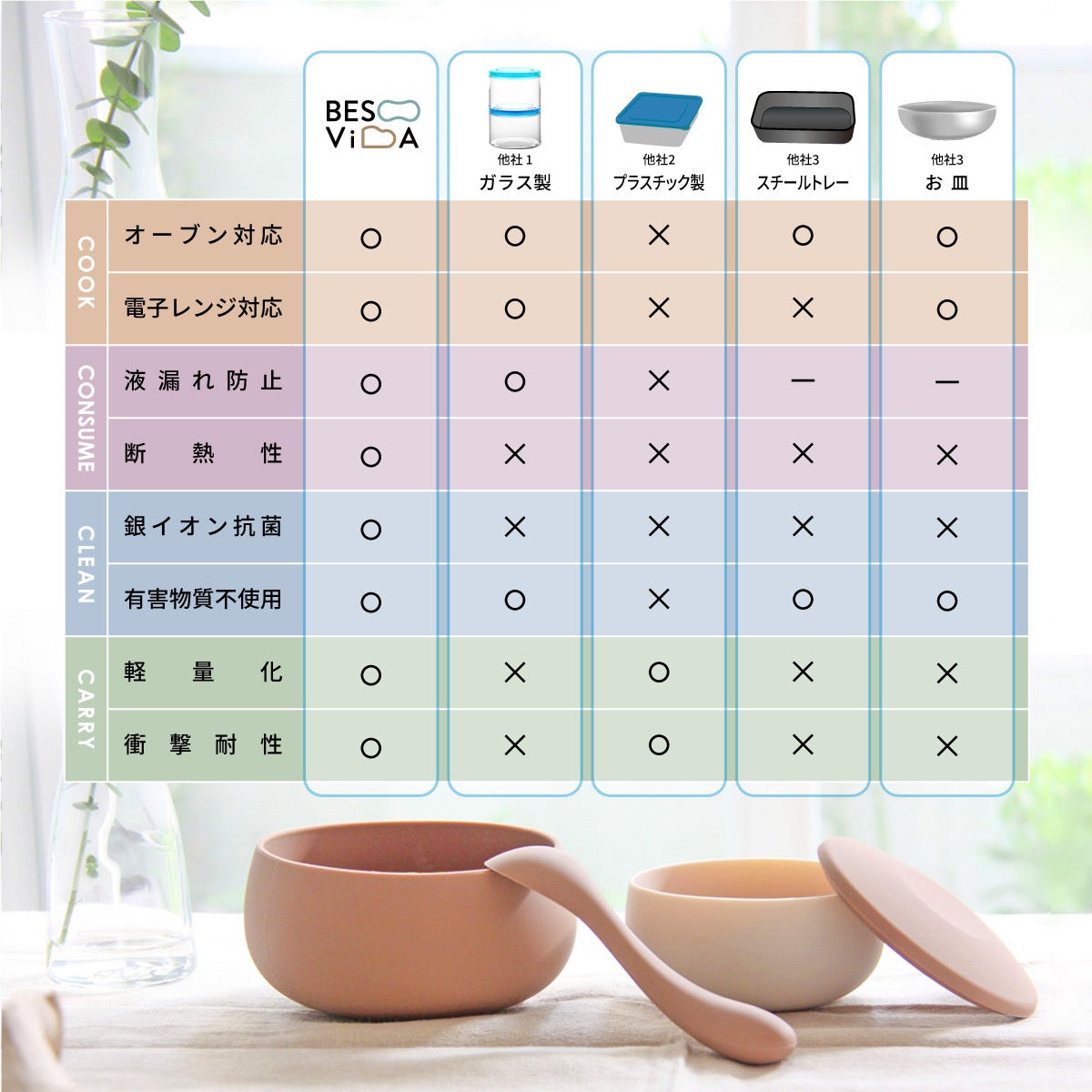 調理から食器・保管までこれ1つで終わる 抗菌シリコンボウル「BESOVIDA」