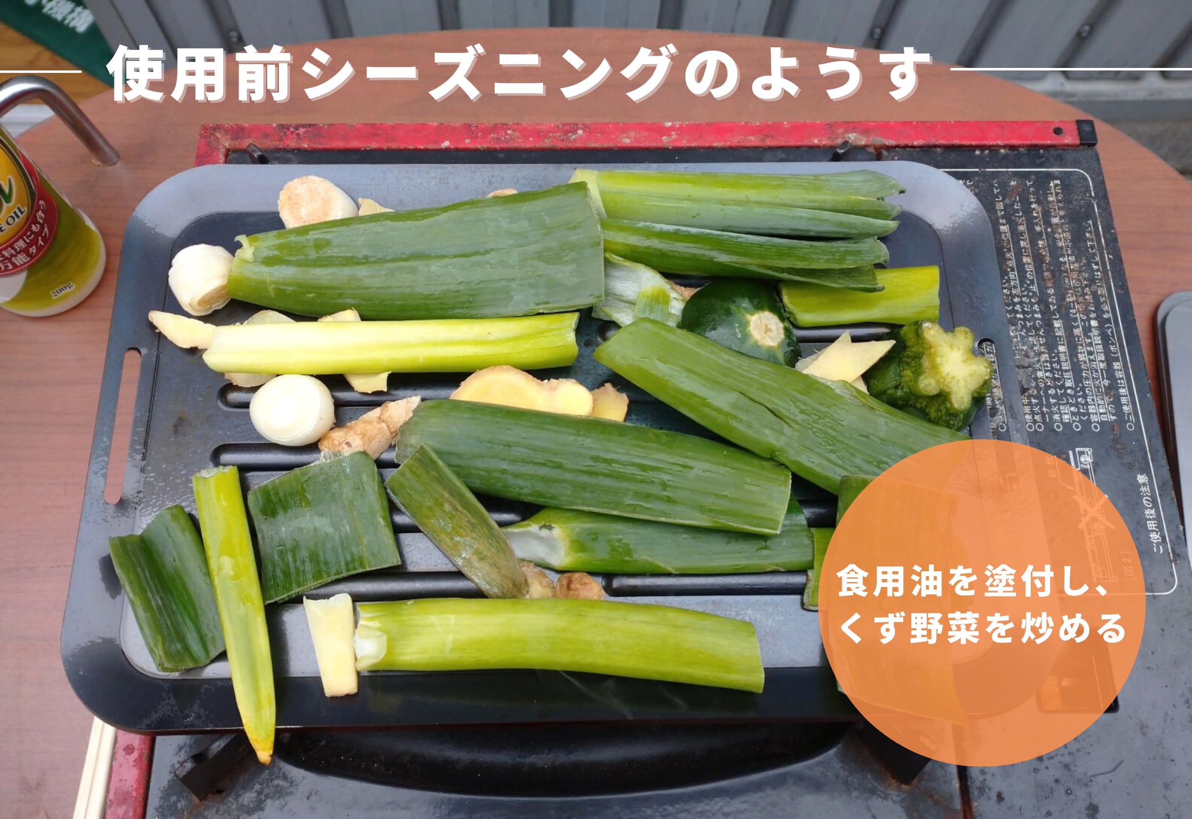 ⑥再度食用油を塗付し、くず野菜を炒める