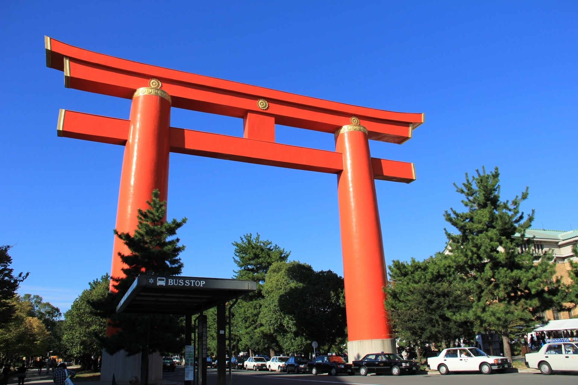▶ 高さ24m、幅18mにもおよぶ平安神宮大鳥居