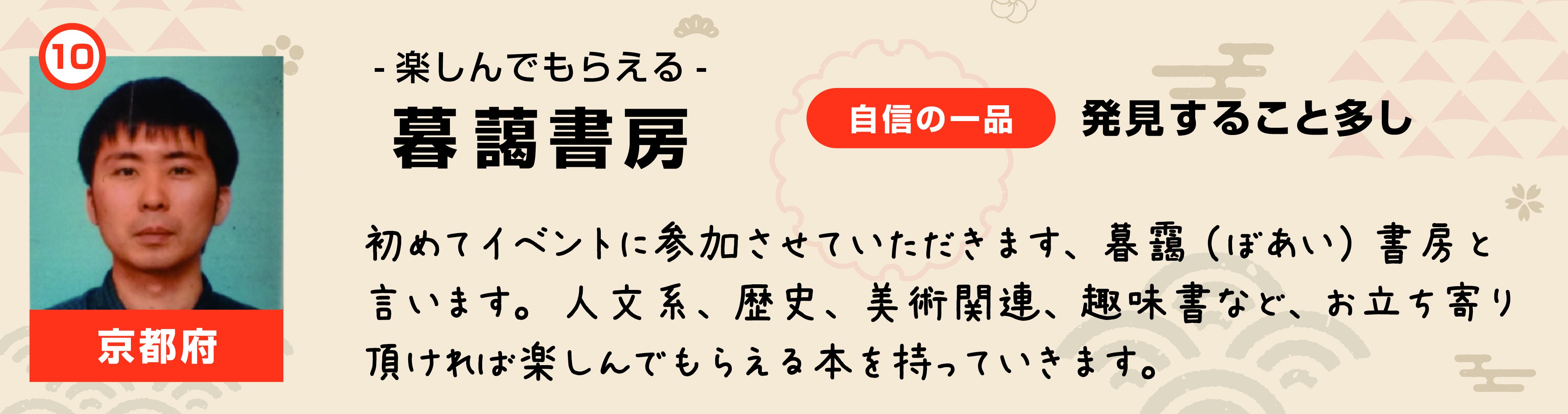 ⑩暮藹書房 京都市北区衣笠鏡石町9-14 TEL070-5659-4509