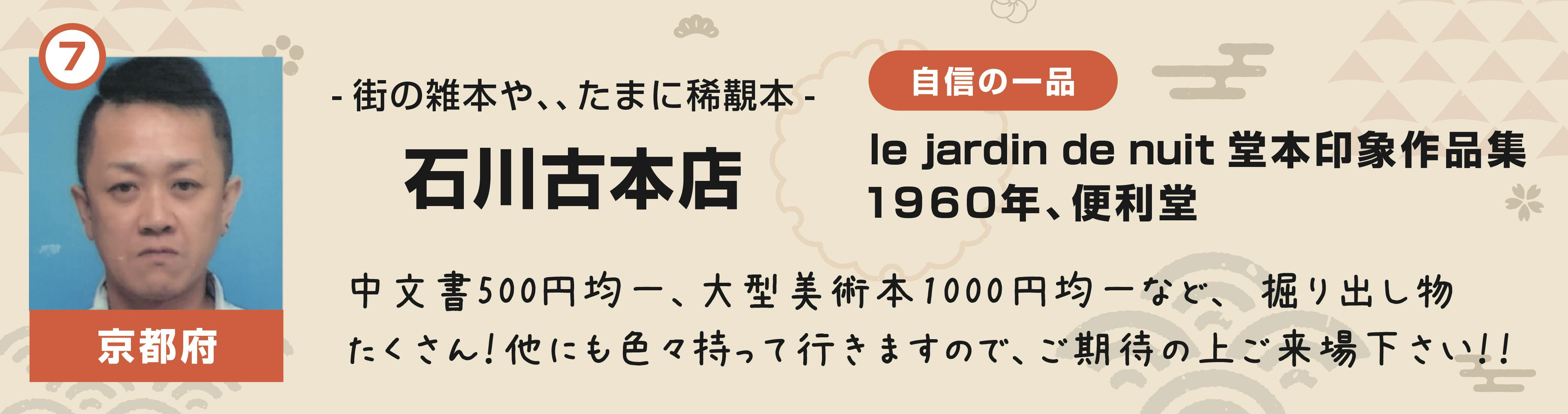 ⑦石川古本店 京都市左京区一乗寺南大丸町95 TEL075-711-5429