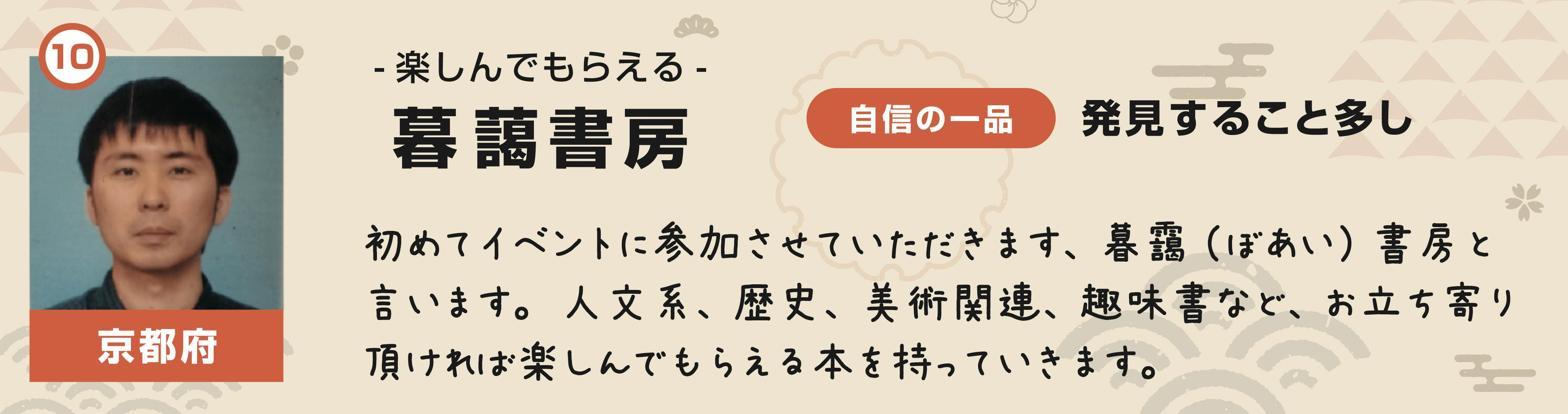 ⑩暮藹書房 京都市北区衣笠鏡石町9-14 TEL070-5659-4509