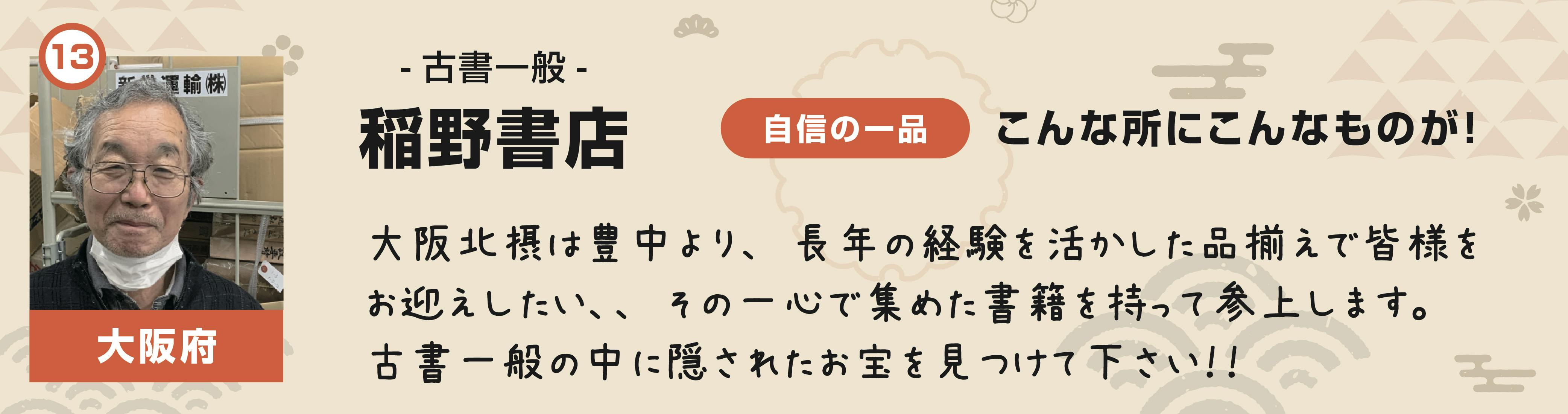 ⑬稲野書店 大阪府豊中市服部西町2-8-7 TEL06-6866-2320