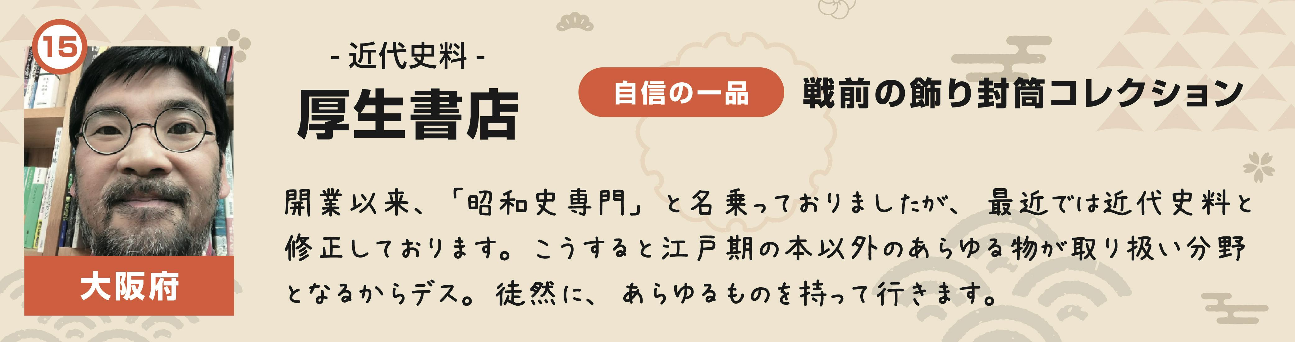 ⑮厚生書店 大阪市中央区谷町6-3-12 TEL06-6773-9360