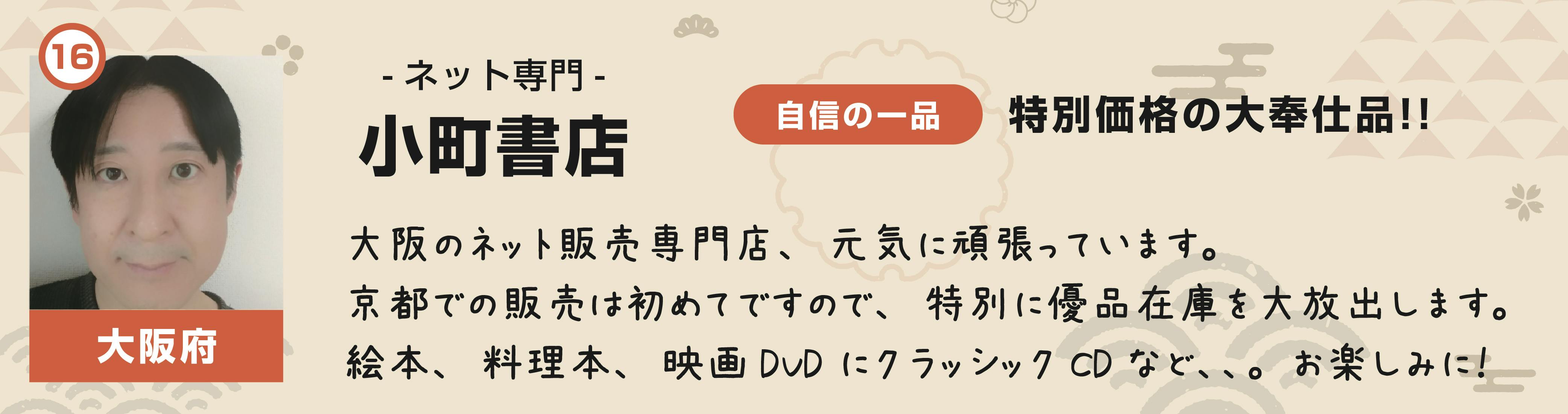 ⑯小町書店 大阪市東淀川区大道南3-6-15 TEL090-3625-0178