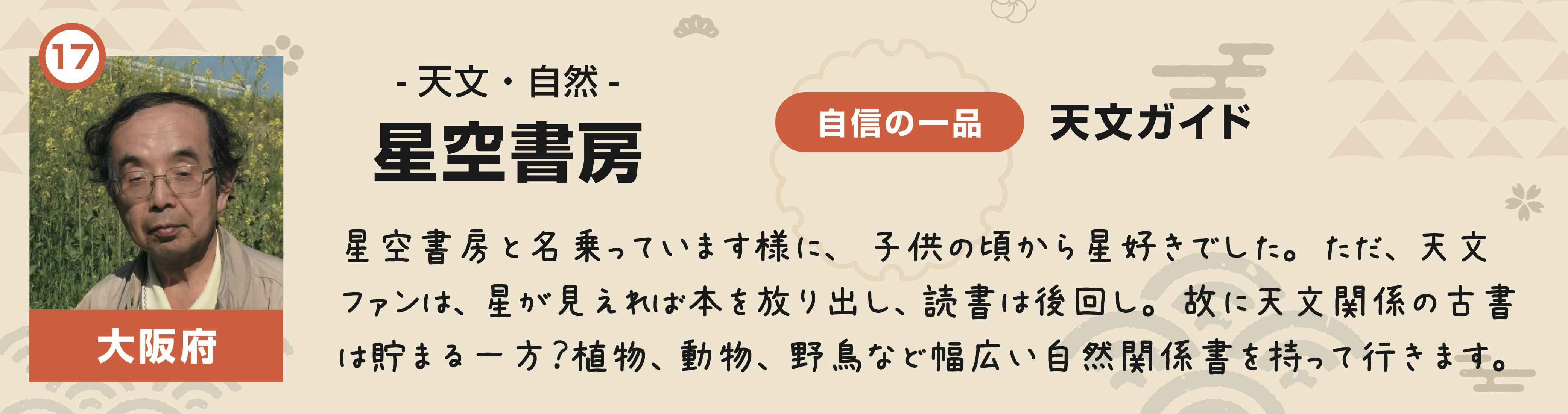 ⑰星空書房 大阪府高槻市津之江町3-3-6 TEL072-696-4210